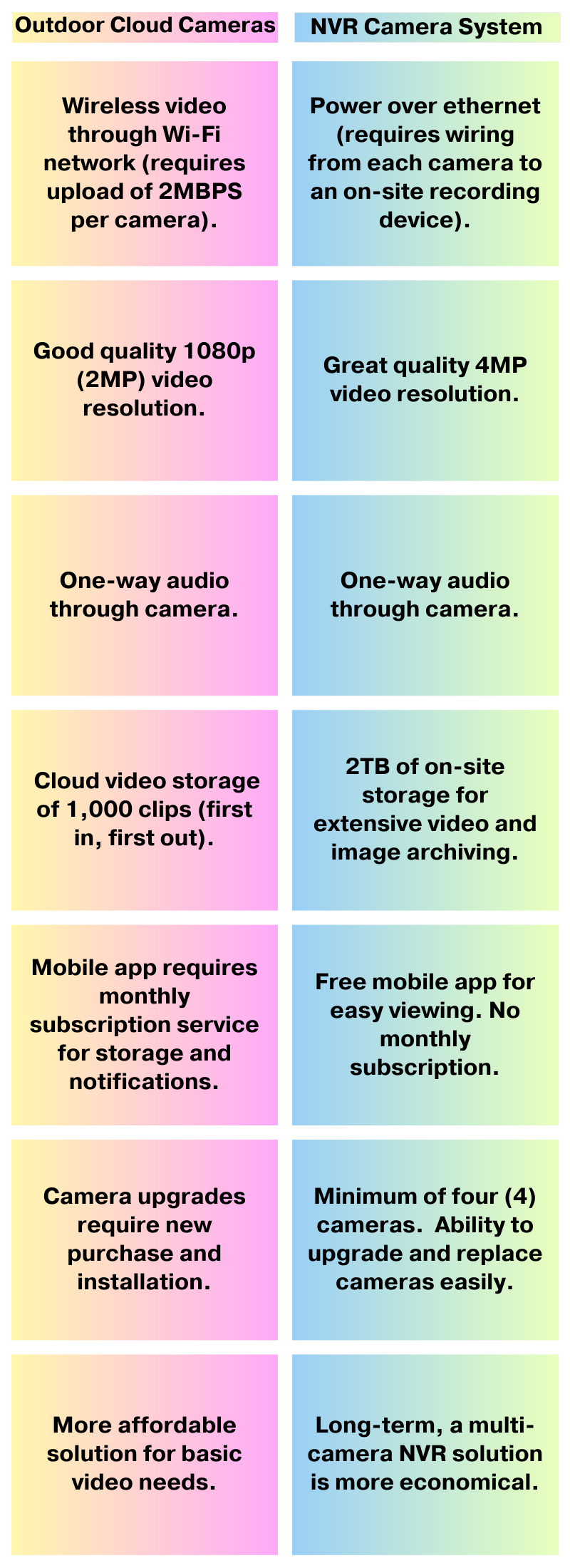 - Set up security cameras: Install cameras in strategic locations around your property. Review footage regularly to monitor for any suspicious activity. EMC Security can help you choose the right cameras for your needs.